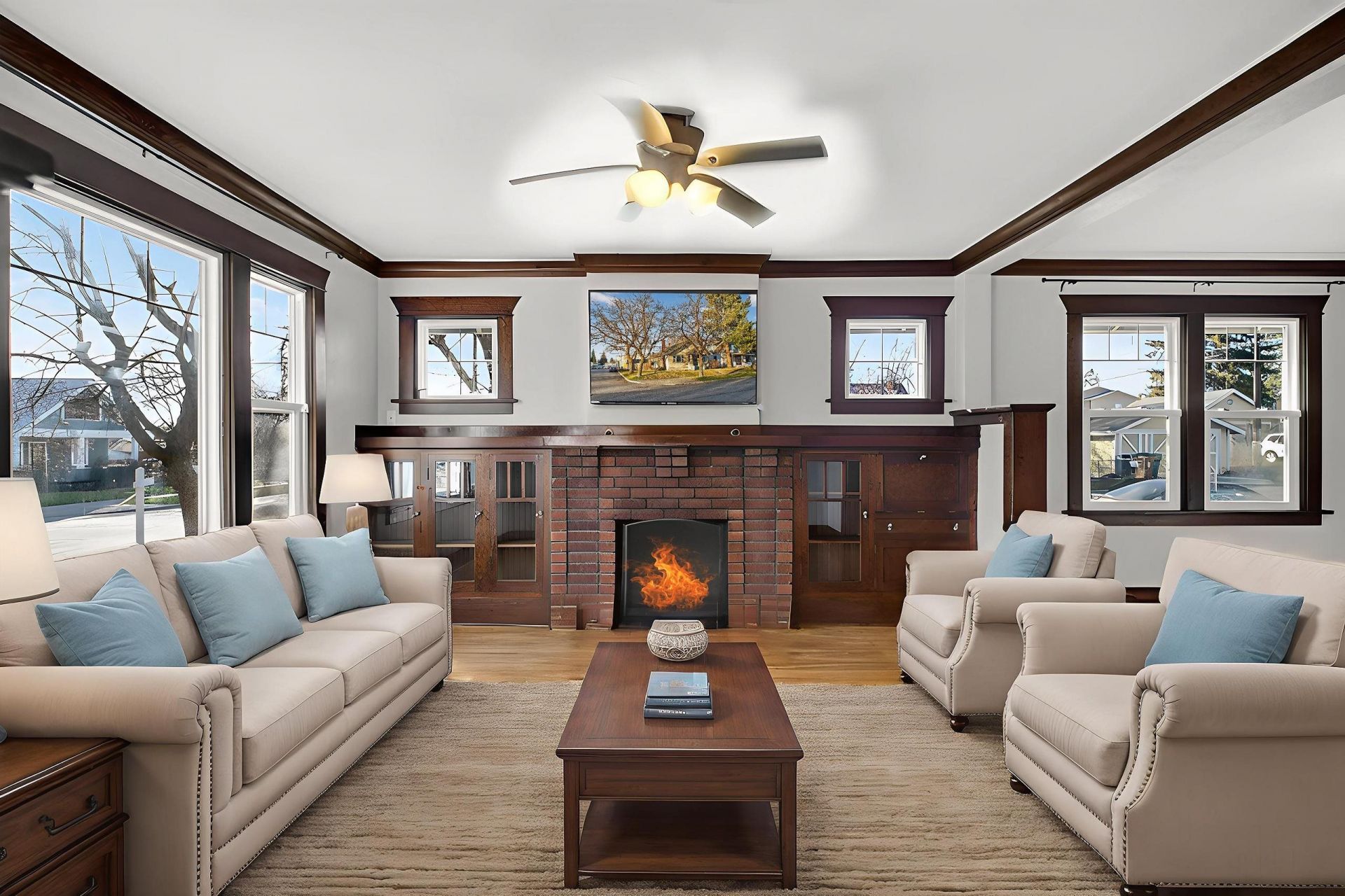 One of a kind! Beautiful Craftsman pebbledash stucco home in the heart of the popular Garland District on a corner lot! 4 bed, 2 bath home offers 2,200 sq ft of timeless charm and modern updates. Gorgeous hardwood floors and original woodwork highlight the character throughout. The inviting living room features a stunning fireplace, flanked with built in bookshelves. Open feel living into the huge formal dining room. Newer vinyl windows provide abundant natural light. This home includes a newer furnace and central A/C for year-round comfort. Electrical and plumbing updated. This one-of-a-kind home in a great neighborhood. Just blocks away to shops, dining, and parks. Potential in-law setup with separate entrance offers flexible living options. Enjoy the fully fenced backyard and a 2-car insulated garage with opener. A perfect blend of classic charm and thoughtful updates