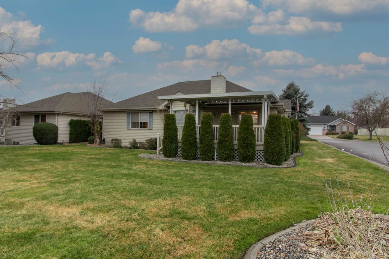Located in the desirable 55+ gated community of The Summit at Evergreen in Veradale, this ranch-style home offers 3,368 sq ft of finished living space, including a fully finished basement, and is ideal for extended family or senior living. Designed for accessibility, it features an $8,000 wheelchair ramp and wide doors and hallways throughout. The main floor has vaulted ceilings and a spacious kitchen with granite counters, convection oven, and ample storage, plus main-floor laundry with utility sink. Two bedrooms and 1.75 baths are on the main level, including a generous primary suite with double sinks, 2 walk-in closets, and tile step-in shower. The lower level includes two additional bedrooms, a den, family/rec room, bathroom, and workshop w/ four storage closets (room to add a second kitchen). Hunter-Douglas blinds are featured throughout + central vac. Hi-efficiency GFA heat and central air provide year-round comfort. Enjoy a large covered composite deck and an association-maintained .19-acre corner lot.