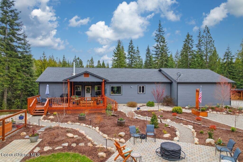 Tucked away at the end of a private road, this beautiful and secluded 5-acre property offers the perfect blend of privacy, comfort, and versatility. The spacious 3,584 SF home features 5 BR/4 baths with an inviting open-concept design and a comfortably laid out living room that is ideal for gathering with family and friends. The kitchen and 3 bathrooms have been beautifully remodeled, while the spacious primary suite offers a relaxing retreat with a soaker tub and tiled shower. Downstairs, you'll find a wonderful walk out family room, game room and bar area ideal for entertaining, as well as 2 additional bedrooms, a bathroom and a huge laundry room with abundant storage. Outside, the beautifully landscaped grounds create a peaceful setting with multiple patio and fire pit areas designed for enjoying Idaho evenings with family and guests. A standout feature of the property is the impressive 30x50x16 shop complete with a bathroom, radiant floor heat, and a 14-foot tall door, offering endless possibilities for hobbies and storage. In addition, there is a charming 199 square foot tiny home built in 2022 featuring 1 BR/1BA and a loft area, making it ideal for in-law quarters or guests. Within five minutes you can be down at the swim dock or the boat launch at Twin Lakes. This one-of-a-kind property offers room to live, work, and entertain in a truly private setting surrounded by 40 acres of timber land.