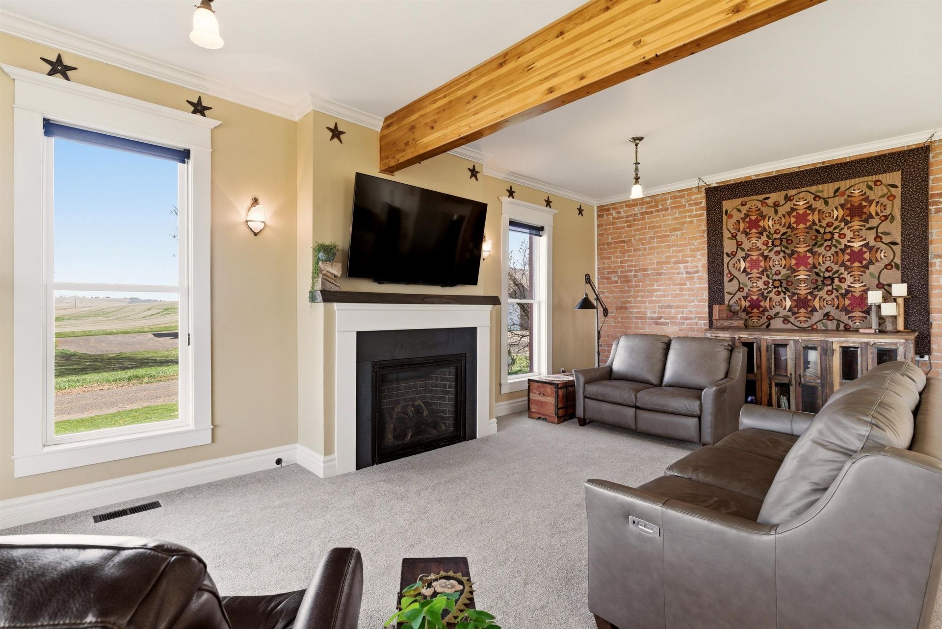 Set on over 11 acres in Reardan, this 4 bed, 3 bath two-story farmhouse offers refined country living with sweeping views in every direction. Bathed in natural light, the home showcases thoughtfully designed living spaces, a formal dining room, and a well-appointed butlers kitchen that elevates both everyday living and entertaining. Main floor laundry adds effortless convenience. The grounds are equally impressive, featuring an in-ground pool for private summer retreats, two garages, and a substantial storage barn. A separate fabric shop building presents a rare opportunity?perfectly suited for a boutique business, private office, or curated Airbnb experience. With Starlink internet providing modern connectivity, this property seamlessly blends elevated comfort with the tranquility and beauty of expansive rural surroundings.