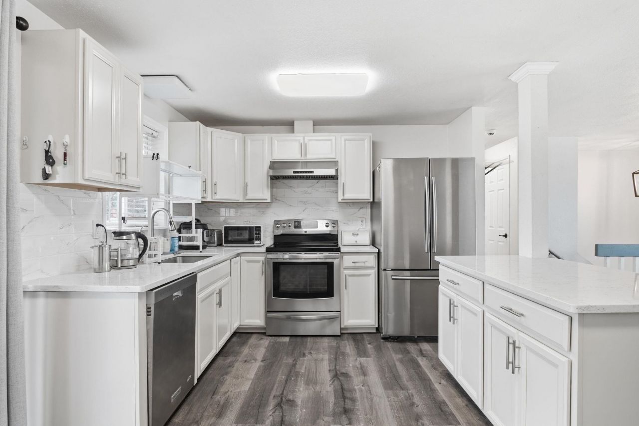 Beautifully remodeled split-level home offering space, flexibility, and income potential! This 4-bedroom, 2-bath property features an ideal layout with a separate entrance to the lower level ? perfect for a potential in-law setup or duplex opportunity. The basement already has plumbing and a sink in place for a future kitchenette (buyer to verify). Upstairs youll love the updated finishes and natural light throughout. Situated on an oversized corner lot with fruit trees and a dedicated garden area, plus room for RV parking, a shop, or additional outdoor living space. Located in a quiet neighborhood just minutes from shopping, dining, schools, and everyday amenities ? this move-in ready home offers comfort, convenience, and long-term versatility.
