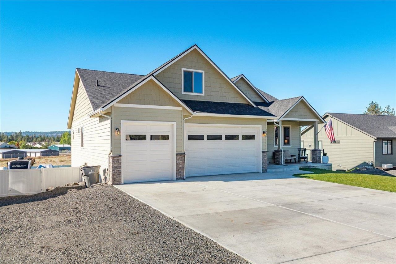 This Craftsman-style home in the Suncrest Vistas community offers space inside & out, plus features you wont find every day. Set on just over .5 acre, the fully landscaped yard includes a 45x35 sports court, space for RV/boat parking, and a patio for watching sunsets. A welcoming front porch sets the tone, while access to Suncrests bridal trails and nearby Long Lake put recreation right at your doorstep. Inside, 2090 sqft on the main level is filled with natural light and 9 ft ceilings throughout. The open layout centers around a stone fireplace, with a kitchen that features granite counters, an oversized island, and gas range. The primary suite includes double sinks, a soaking tub, and walk-in closet. Three more bedrooms, including an office/bonus room, provide plenty of flexibility. The unfinished daylight basement (1677 sqft) is drywalled, wired, & plumbed for a 3rd bath. A 3-car garage completes this quality-built home, all just 15 minutes from Spokane!