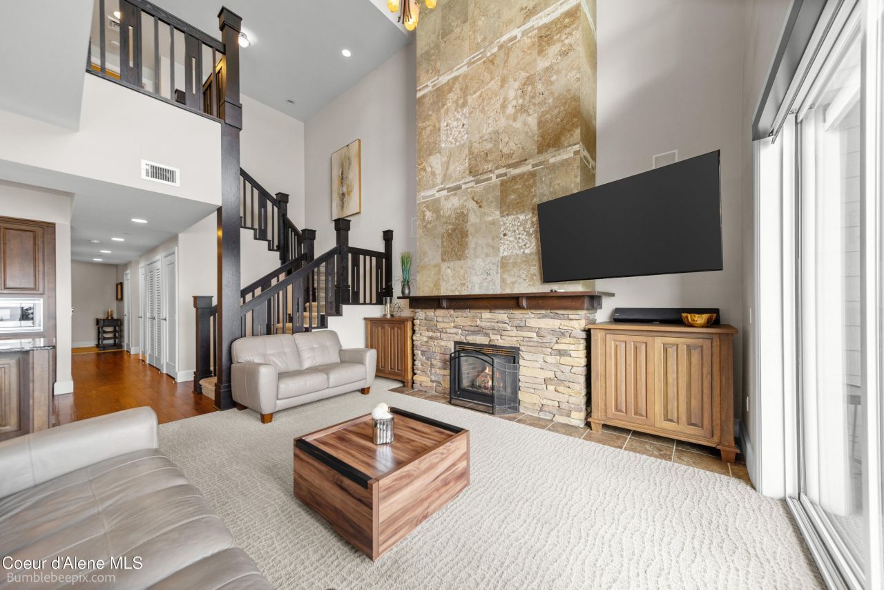 LUXURY PENTHOUSE RETREAT with Panoramic Views-Seasons at Sandpoint Experience waterfront luxury in this 2 story penthouse in building 7 at Seasons at Sandpoint Resort. This 3BD/3BA, 2118 SF home features soaring ceilings, auto view shades, and an open kitchen, dining & living area showcasing Lake Pend Oreille views. Fully furnished with top floor privacy and a 330 SF deck-perfect for sunrises and 4th of July fireworks. Includes primary suite, guest ensuite, and main level bedroom with full bath. (Includes boat slip with dock box, two prime parking spaces, and large garage storage.) Resort amenities: heated pool, spa, gym, beach, pavilion, and docks. Walk to downtown Sandpoint, only 25 minutes to Schweitzer Mountain.