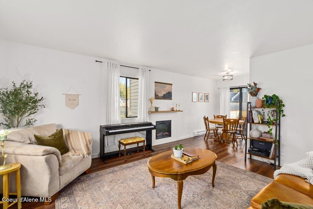 Well maintained and thoughtfully updated 2 bedroom, 1 bathroom condo in a prime Hayden location. The open layout creates a comfortable flow between the living, dining, and kitchen areas, anchored by a cozy wood burning fireplace. Recent updates include new laminate flooring throughout, new light fixtures and all fresh paint, giving the home a clean, modern feel. The kitchen includes a range and dishwasher, and the deck provides a quiet outdoor retreat with mountain views.This unit includes a one car carport and secure storage closet plus designated visitor parking nearby. HOA amenities include two pristine community pools, tennis courts, and walking paths, with water, sewer, snow removal, and lawn care included in the dues.Located approximately one mile from shopping and Honeysuckle Beach on Hayden Lake, this move in ready condo offers low maintenance living with access to recreation and everyday conveniences.