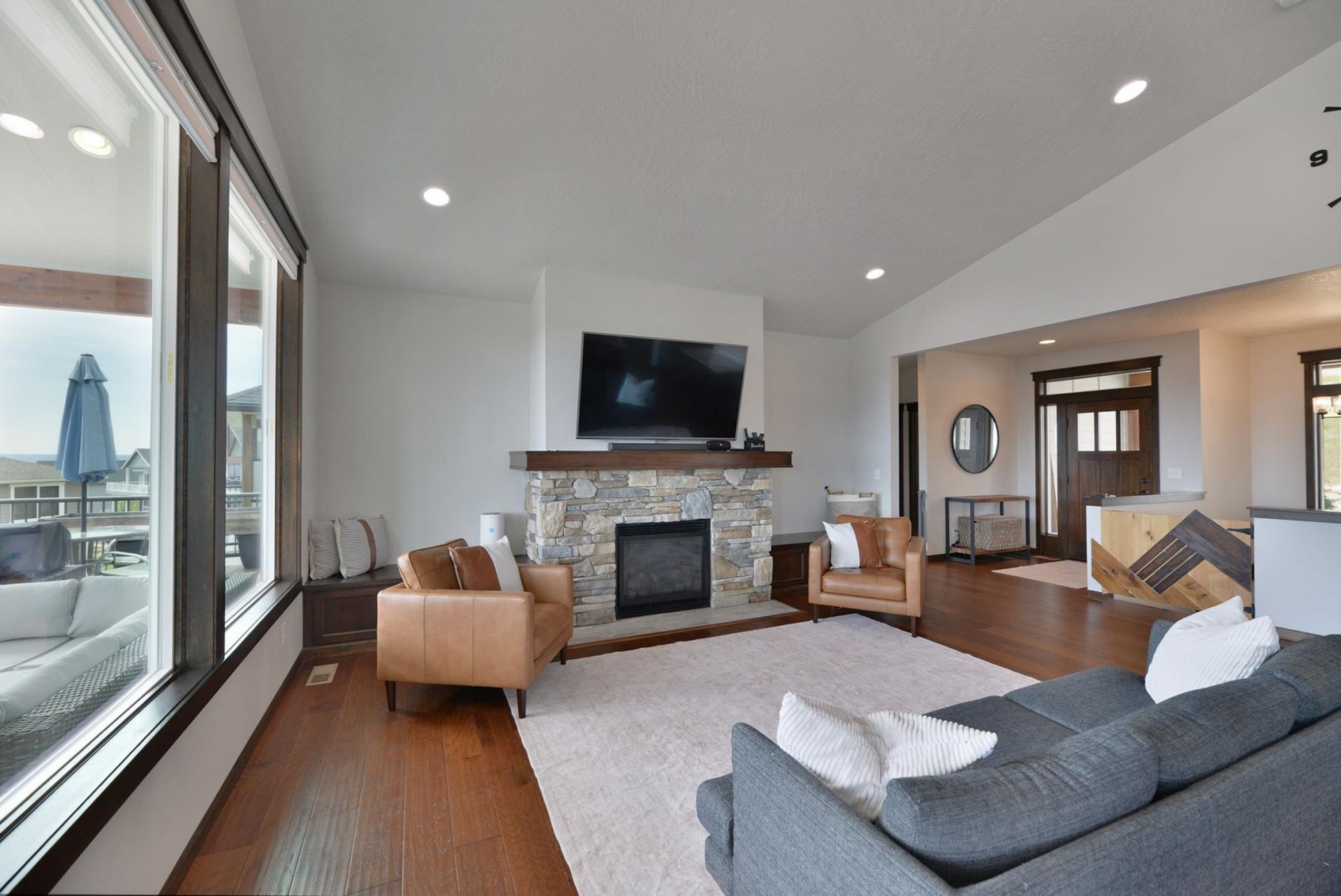 This stunning 2021 custom-built Gordon Finch home has too many features to list! Rancher with fully finished daylight basement including a full in-law setup. One step inside reveals views for days for the picture window that leads to the covered balcony (with gas stub for BBQ). Main floor primary suite with walk-in shower and dual heads. Split floorplan with 2 more bedrooms and another bath with gorgeous tiled shower on other side of the home. Vaulted ceilings, wood floors, wood accents, open concept kitchen/living/dining, granite counters, mudroom off the FOUR car garage (with epoxied floors and hot/cold water access). Basement has full in-law setup with outside entry, living, kitchenette, bed and bath. Extra large second living space with wet bar, tons of storage, and another deck. Gas hot water, hot tub hookup available, 3-zone efficiency heating and cooling, conduit available for solar, custom landscaping with sprinkler and drip, all on a dead end road.