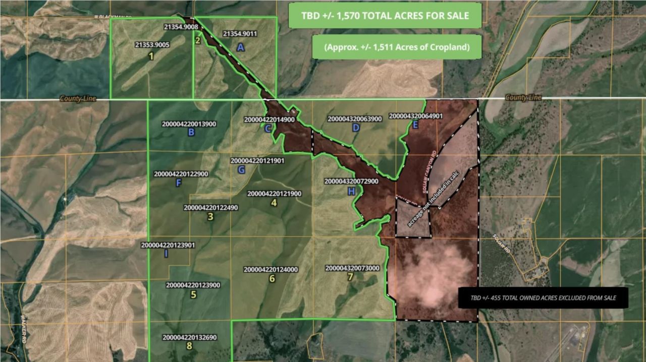 Acreage 1,570+/- Total Acres 1,511+/- Cropland acres Rainfall 18-20 +/- inches annually Located west of Rosalia, Washington, and north of Malden in both Whitman and Spokane Counties this well-established farm offers both productivity and scenic appeal. The offering includes over 1,500 contiguous acres of dryland wheat ground in the fertile northern Palouse region. Yields rom a three-year rotation typically range between 85 and 55 bushels per acre for winter and spring wheat. Barley is also grown on the property. The cropland lays well and includes productive draws characteristic of the area. Currently operated by the longtime owners, the farm will be available after harvest for fall seeding in 2025. This is a stable asset with proven production potential, offering a strong investment opportunity for the future.